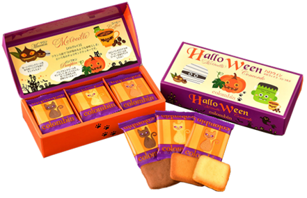サクッと軽いラングドシャ生地にチョコレートをサンドした定番クッキーです。2種類の味が楽しめる詰め合わせです。可愛い黒猫のデザインが、ハロウィン気分を盛り上げます。ちょっとしたプレゼントやご自宅用にぴったりの商品です。